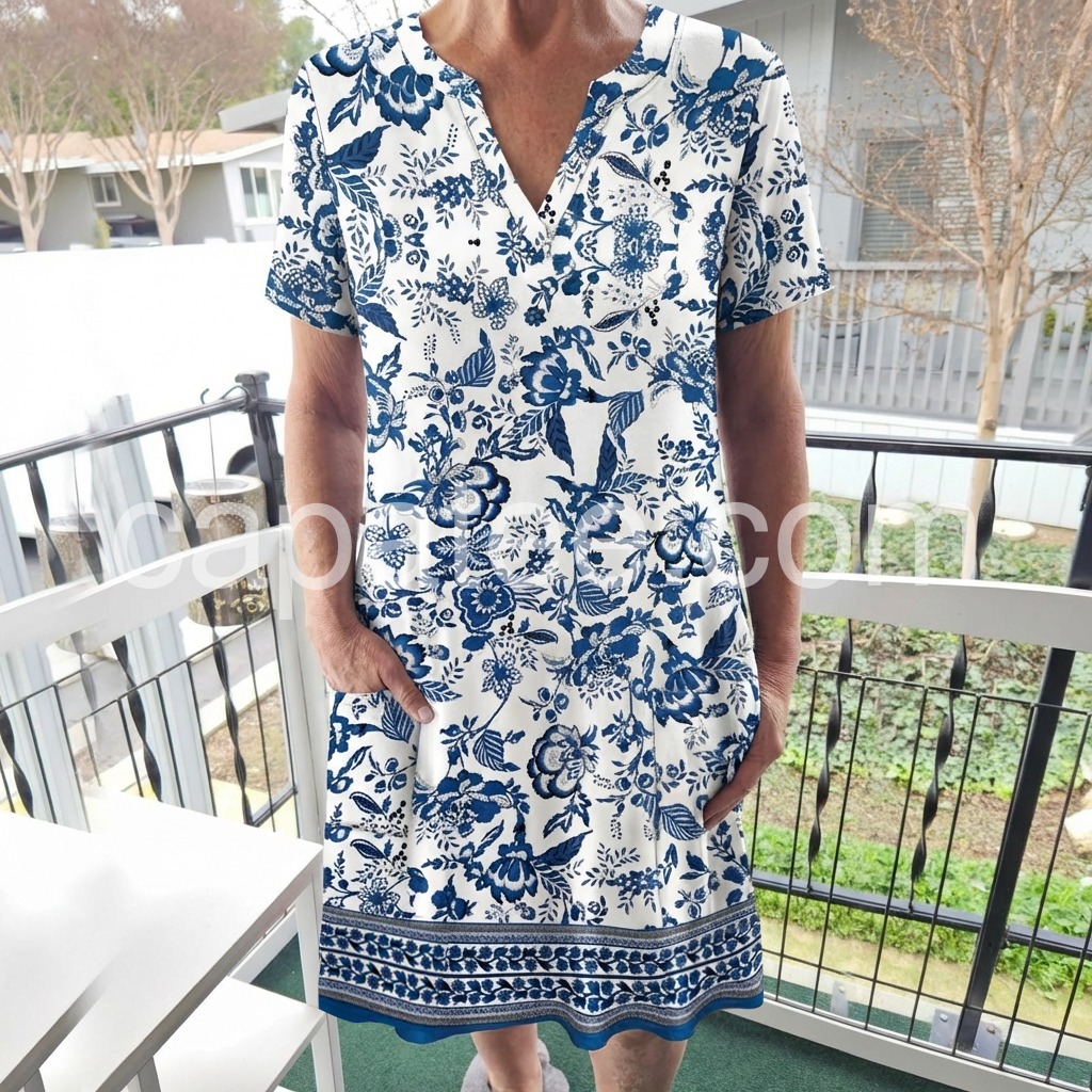 This dress draws inspiration from classic blue-and-white porcelain, blending timeless elegance with modern comfort.