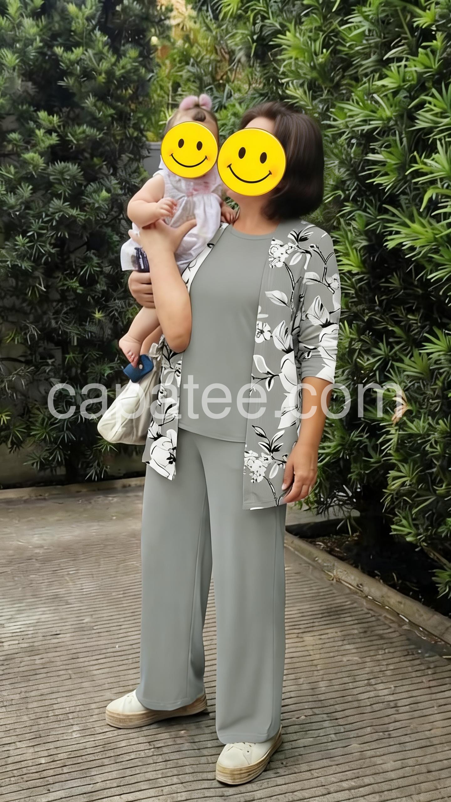 Grey Floral Print Three Piece Set
