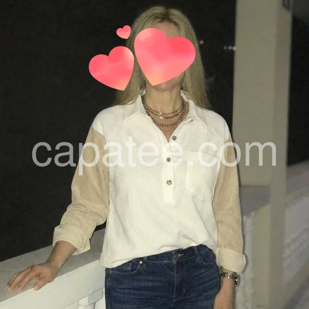 I really like this shirt! The color is a soft neutral (cream/ivory) that goes with everything, and the Henley button front looks classic. The fabric feels comfortable and lightweight, and the fit is just right—not too tight. I also like the simple pocket detail on the chest. It’s perfect for casual outfits and looks great for holiday or everyday wear.