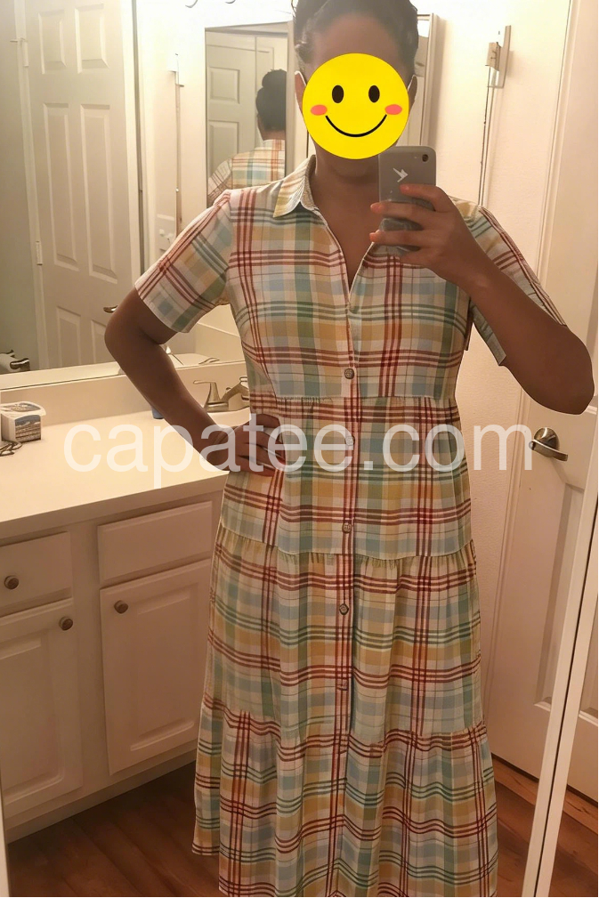 This plaid maxi dress is designed with a casual shirt silhouette and soft color matching for a sweet, relaxed vibe. The lightweight material drapes nicely and feels breathable.