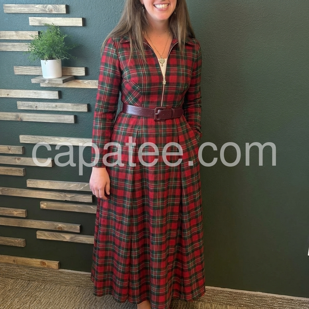 Elevate your wardrobe with this striking red plaid maxi dress, designed for those who appreciate timeless style with contemporary flair. The full-length silhouette offers sophisticated coverage, while the zip front closure provides effortless dressing and versatile styling options. Long sleeves deliver warmth and elegance, making this piece ideal for layering or wearing solo across seasons. The classic plaid pattern adds visual interest and pairs seamlessly with boots, sneakers, or heels depending on the occasion. Perfect for casual outings, professional settings, or weekend gatherings, this dress combines comfort with refined aesthetics for a polished everyday look.