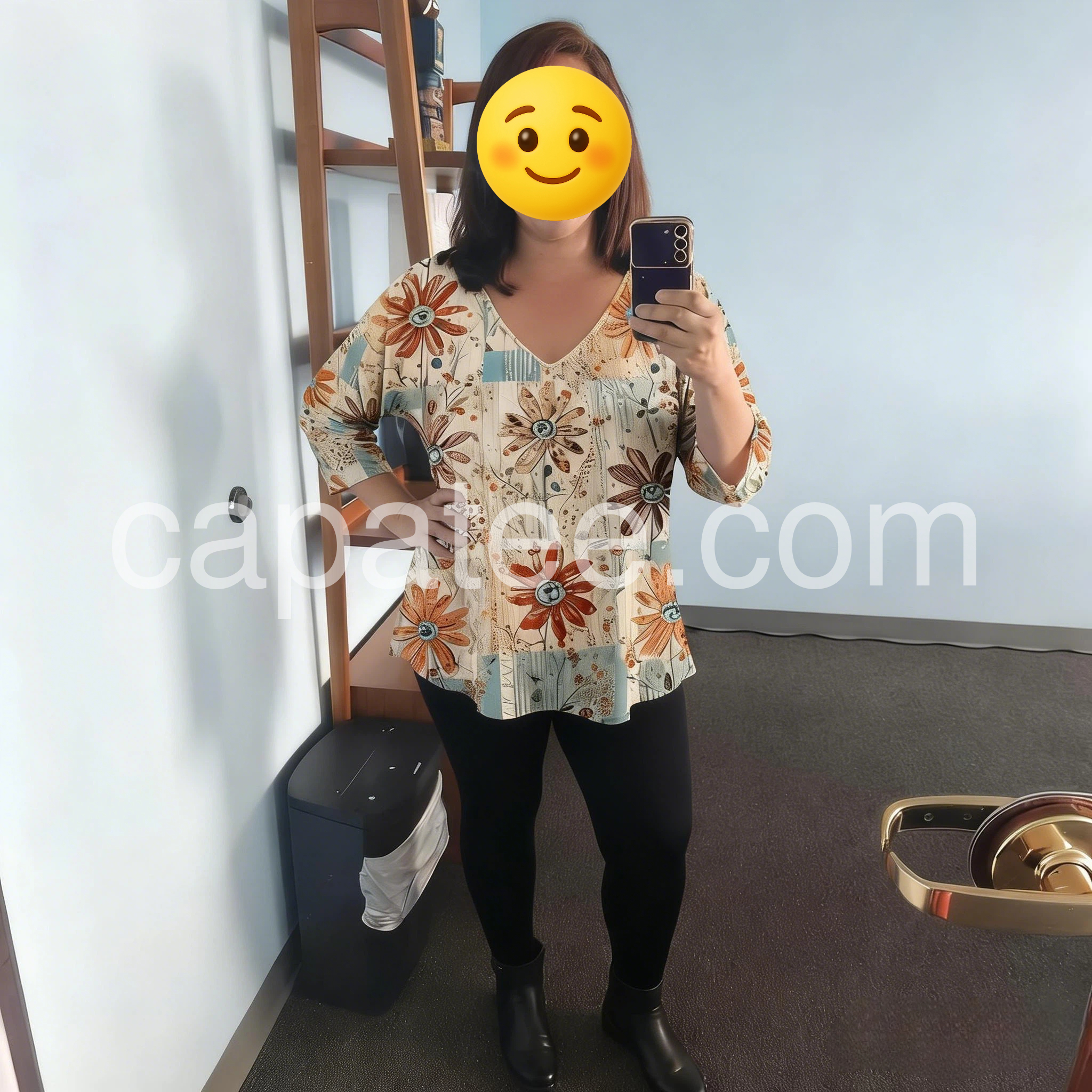 The relaxed V-neck fit and 3/4 sleeves ensure all-day comfort, perfect for elevating everyday outfits with timeless style.