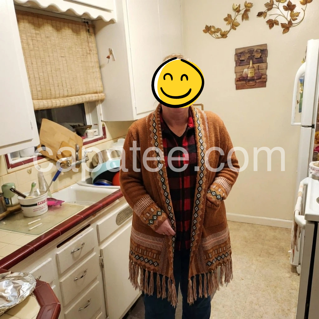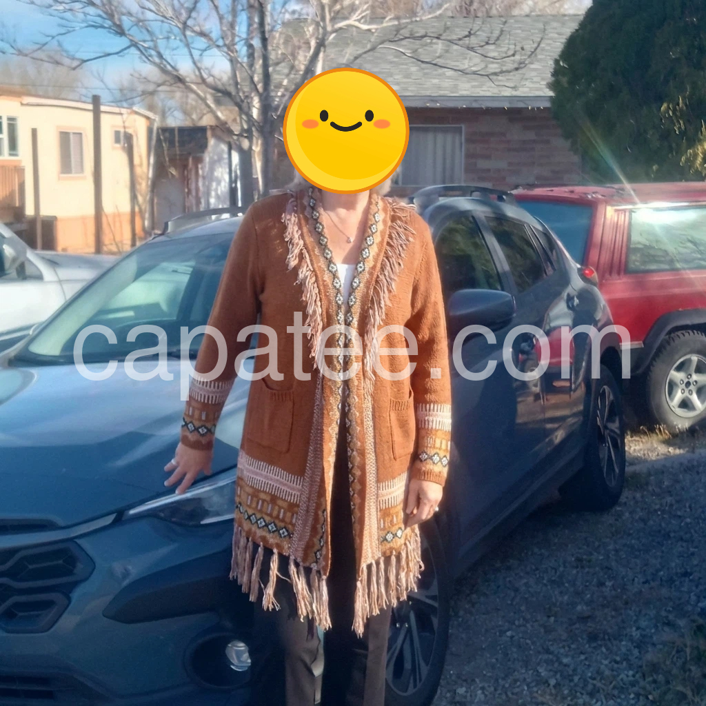I wasn’t sure about the color online, but in person it’s even better—rich, earthy, and easy to match. The pattern looks crisp, and the knit texture feels comfortable against my skin. I also love the long sleeves and the fringe detail; it makes the cardigan look styled rather than just thrown on. I’ve worn it to brunch and on weekend errands, and it keeps me feeling cozy without overheating. The fit is flattering and gives a nice loose silhouette. I’m very happy with this purchase.