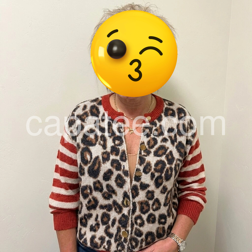 This jacket is adorable. The button-up front makes it easy to wear, and the leopard pattern with the striped sleeves gives it a unique look. It’s warm and cozy, and it fits nicely without feeling bulky. Great quality and exactly like the photos.