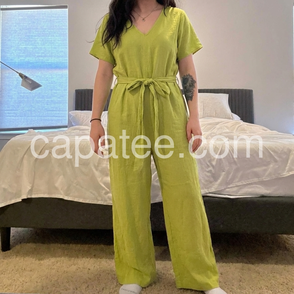 I can’t stop thinking about how flattering this jumpsuit is. The neckline is classy, and the loose fit doesn’t cling or feel restrictive. I also like that the pants fall nicely—everything looks neat even after a full day out. It’s the kind of outfit that makes you feel confident immediately.