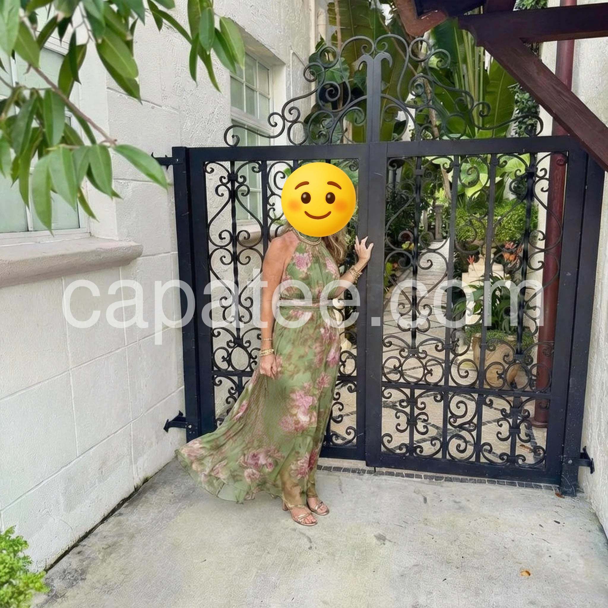 This elegant maxi dress features a striking green floral print that brings natural sophistication to your wardrobe. The halter neckline provides flattering support and a refined silhouette, while the flowing maxi length offers graceful movement and versatile styling options. Perfect for garden parties, summer weddings, or elevated casual occasions, this piece combines timeless design with contemporary flair. The botanical print adds visual interest without overwhelming the silhouette, making it an excellent investment for those seeking quality basics with distinctive character.