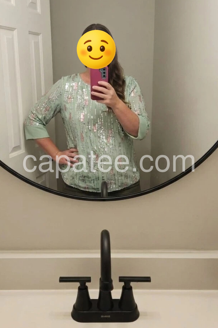 This top is absolutely stunning! The mint green color is so refreshing, and the sequins add just the right amount of sparkle without being overwhelming. Perfect for my upcoming holiday party. Fit is true to size.