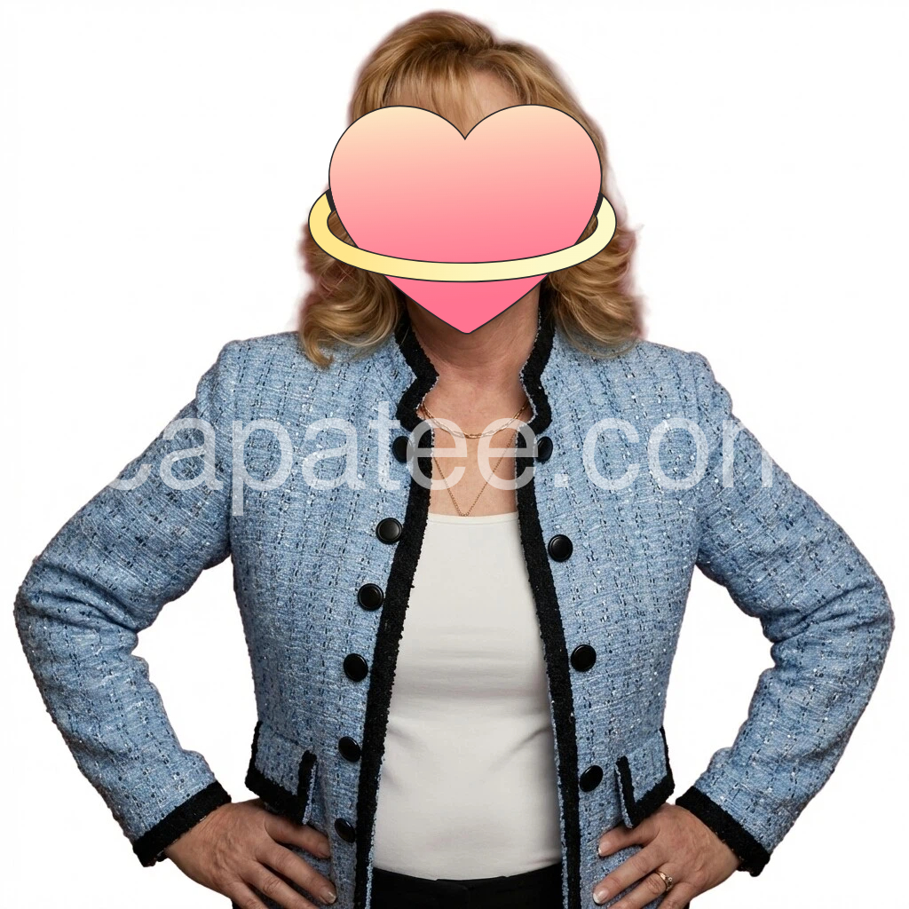 I absolutely love this jacket! The blue textured fabric looks high quality, and the black trim gives it such a classy, standout look. The button details are cute and the fit feels flattering and comfortable. It pairs perfectly with a simple top underneath, and it looks exactly like the photos. Overall, great quality and a really stylish find.