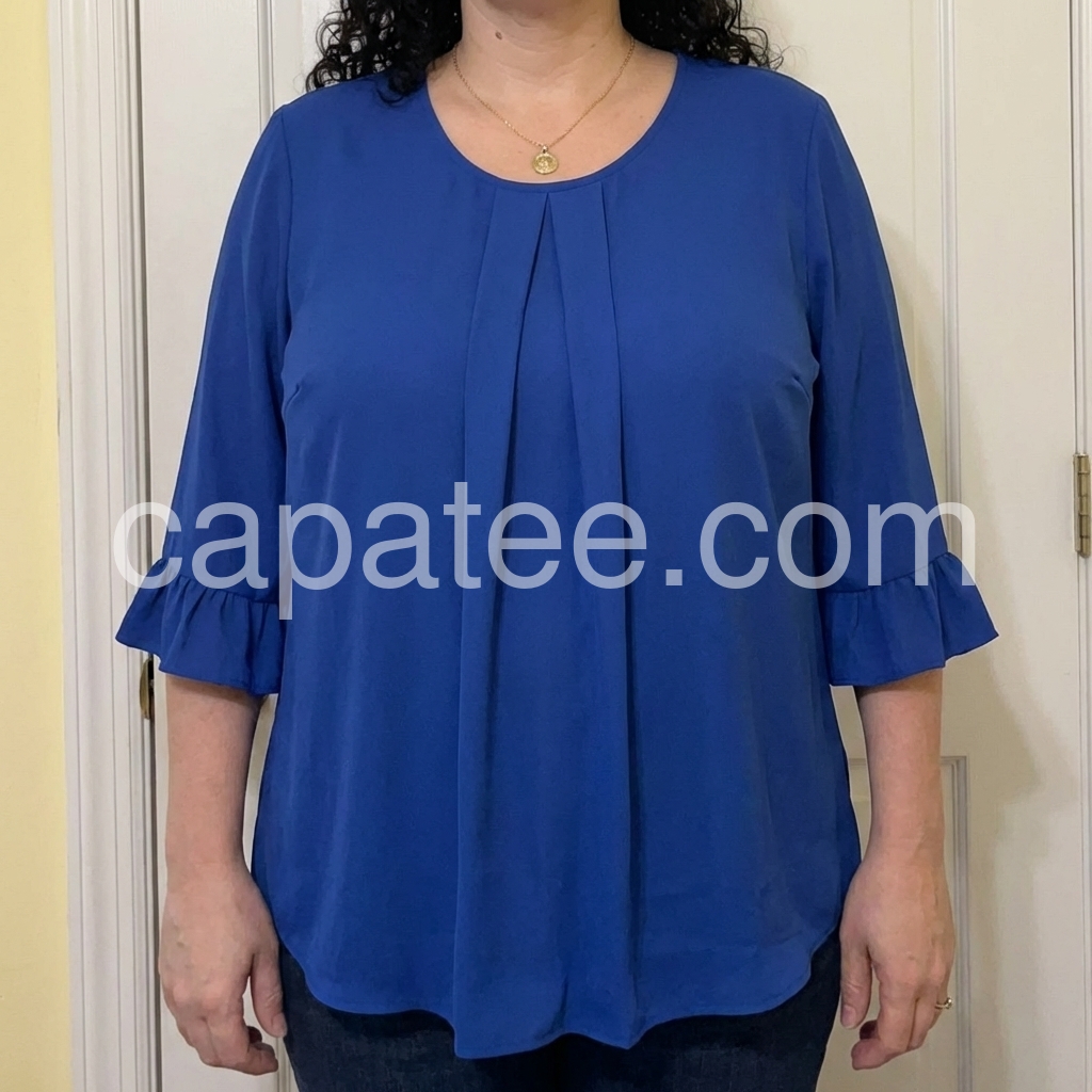 Elevate your everyday style with this gorgeous royal blue blouse. It features delicate front pleats and flirty ruffled cuffs, adding a touch of elegance to your look.