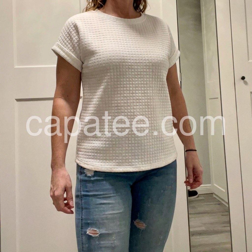 I am absolutely in love with the quilted texture of this top! It adds such a unique touch to a basic white tee. It is very soft and comfortable to wear all day.