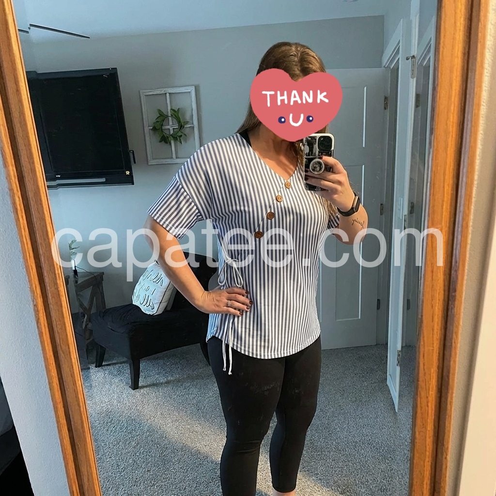 The V-neck, wooden buttons, and adjustable tie cinch the waist beautifully, while the flowy fabric keeps you comfortable.