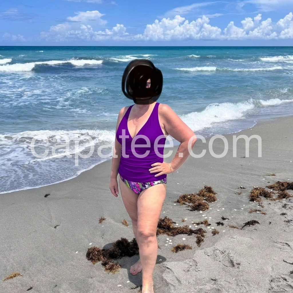 Love this suit because the bottoms have a pattern which helps hide an apron belly. The top straps adjust if you need more or less room, and the price was affordable. It’s comfortable and the quality is good.