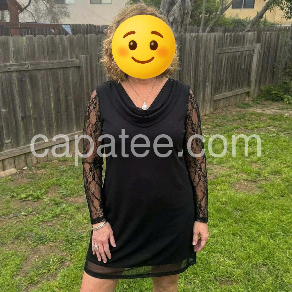 This dress is effortlessly chic and flattering. The lace sleeves add a delicate, feminine touch, while the solid black fabric keeps it versatile for both day and evening events. The length and drape are comfortable, and pairing with a gold clutch elevates the look nicely. Quality feels premium, and the fit is true to size. Fast shipping and friendly customer service completed a smooth shopping experience. Highly recommended for a polished, classic style.