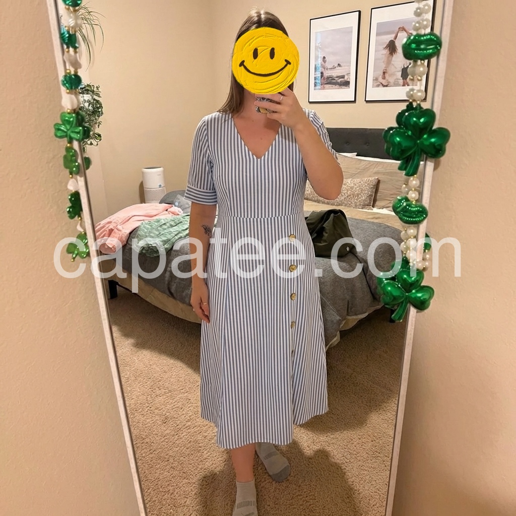 As a curvy woman, I am always looking for dresses that flatter my shape. The vertical stripes on this dress do wonders! It flows beautifully over the hips and the pockets do not add extra bulk. I feel very confident wearing it.