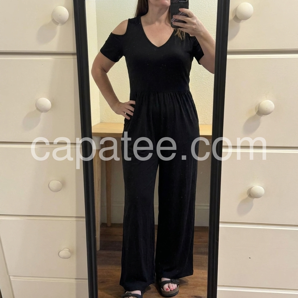 This is the one-piece wonder that actually works. Our fit specialists spent months perfecting the **V-neck silhouette and tailored waist** to flatter real bodies—no guessing games, just curves in all the right places. The **55% rayon and 45% elastane blend** delivers that designer-grade drape you'd expect from luxury brands, sourced through our exclusive factory partnerships at a price that shouldn't exist. Throw it on for the office, dinner, or weekend errands. Machine washable and endlessly versatile, this jumpsuit proves that sometimes **less really is more**—and more is exactly what you're getting. As Coco Chanel would say, "Fashion is not something that exists in dresses only. Fashion is in the sky, in the street; fashion has to do with ideas, the way we live, what is happening." This piece captures that effortless philosophy. Fair warning: the clean lines and impeccable construction mean inventory moves fast. Once it's gone, it's gone—no restocks promised. Grab yours while you can.